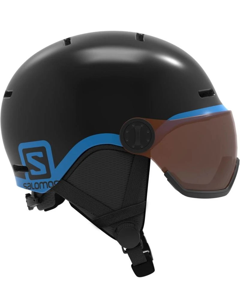De Grom Visor van Salomon is een vizierhelm die gemak en bescherming biedt voor jonge skiërs. Zoeken naar de skibril dat hoeft nu niet meer. Door het Custom Dial Fit System zit de helm snel, gemakkelijk en goed passend op het hoofd.